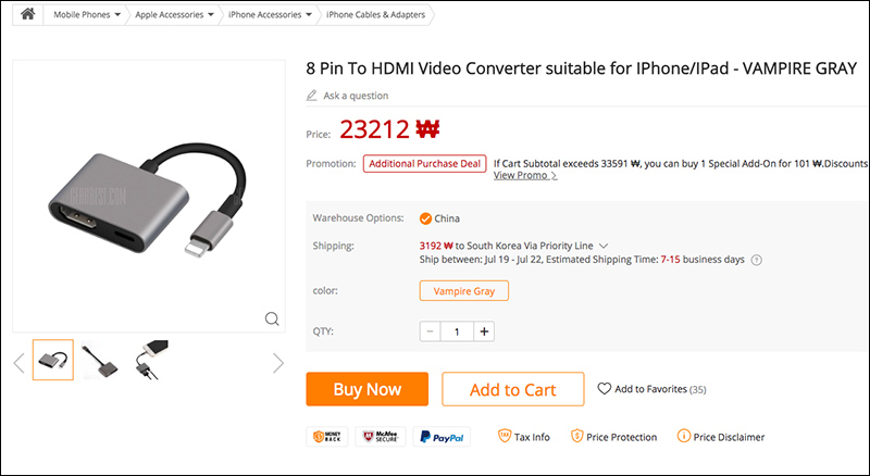 여기서부터는 조금 가격이 있는 편인데요. 아이폰 화면을 HDMI로 뿌려줄 수 있는 어댑터 입니다. HDMI와 USB Type-C가 모두 있어서 정말 유용해보입니다. 가격은 약 23,000원입니다. :)