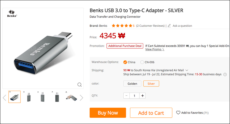 :: Benks USB-A to USB Type-C 어댑터 구입하러 바로가기 ::