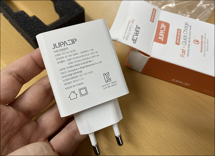 주파집 QC 3.0 듀얼 고속충전기는 국내 브랜드 제품이기에 딱 맞는 플러그로 나옵니다. 그래서 충전시에 움직여서 스파크가 일어나는 경우나... 접점이 안좋아서 충전이 안되는 경우는 없다고 보시면 될 것 같네요.