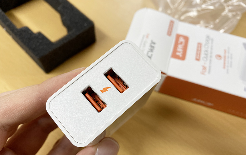 일단 이 제품은 2개의 USB 포트를 가지고 있고, 각각 포트마다 18W + 18W QC 3.0이 적용되어 총 36W 출력, 듀얼 고속충전이 가능합니다. 지금까지 한개의 충전기로 2개의 스마트기기를 제대로 고속 충전할 수 있는 어댑터는 흔하지 않았는데요.