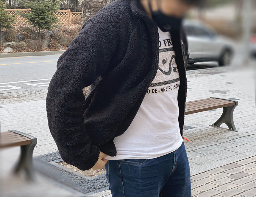 실내에서 집업을 했을 때의 느낌입니다. 밖으로 나가봤습니다.