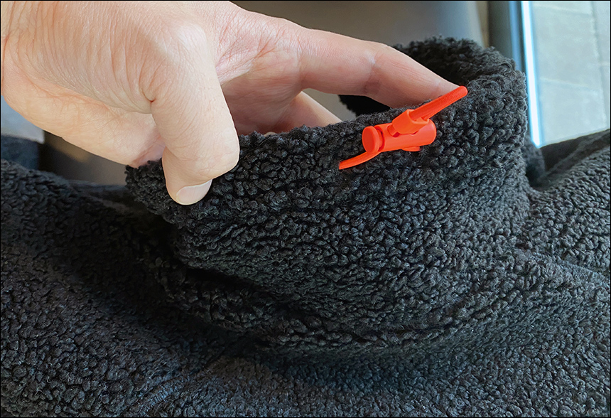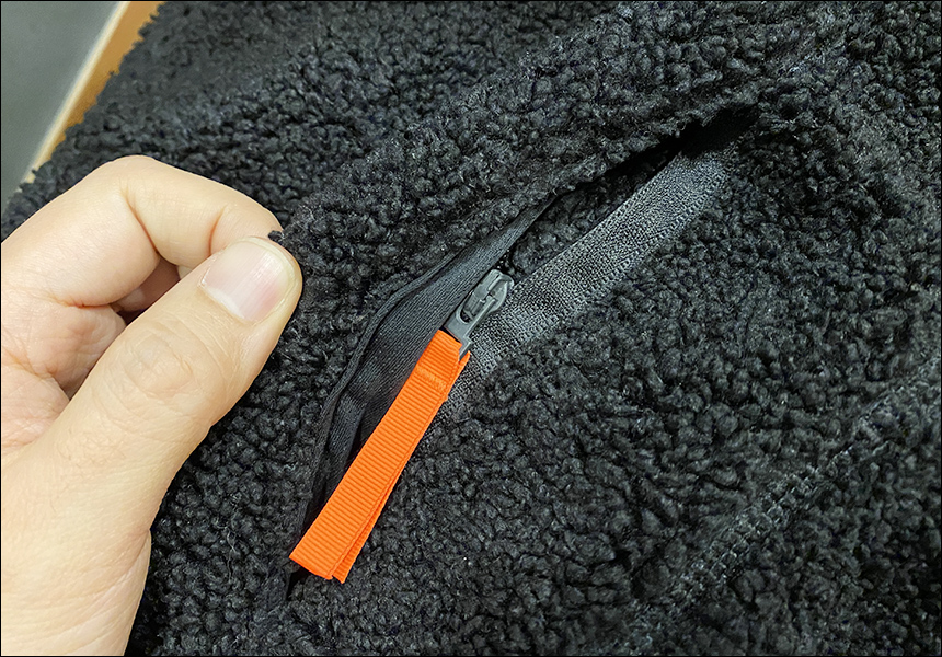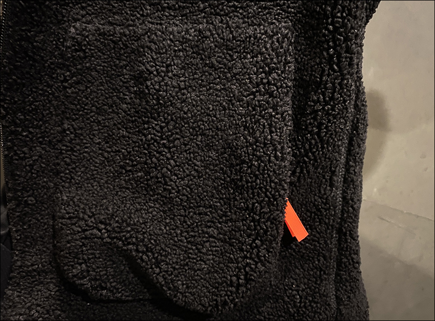 안쪽 디테일 컷입니다. 처음 입을 때 살짝 차가운 느낌이 드는 재질입니다. 다른 플리스와는 달리 안쪽에 땀이 안채는 듯한 느낌이라 안에 반팔을 입고도 매우 촉감이 좋아요.