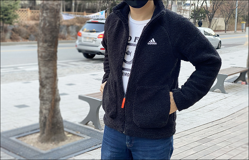 작년까지 저는 노스페이스의 화이트라벨 로얄톤 집업 자켓을 입었는데요. 2020년에는 아디다스 플리스로 갈아타게 되었습니다.