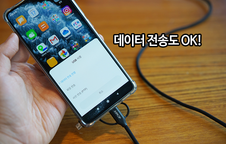 어댑터 기반이기 때문에 모든 6in1 케이블 형태가 데이터 케이블입니다. USB-C만 데이터 전송이 되는 것이 아니라 모두 다 데이터/충전 케이블이라 보시면 됩니다.