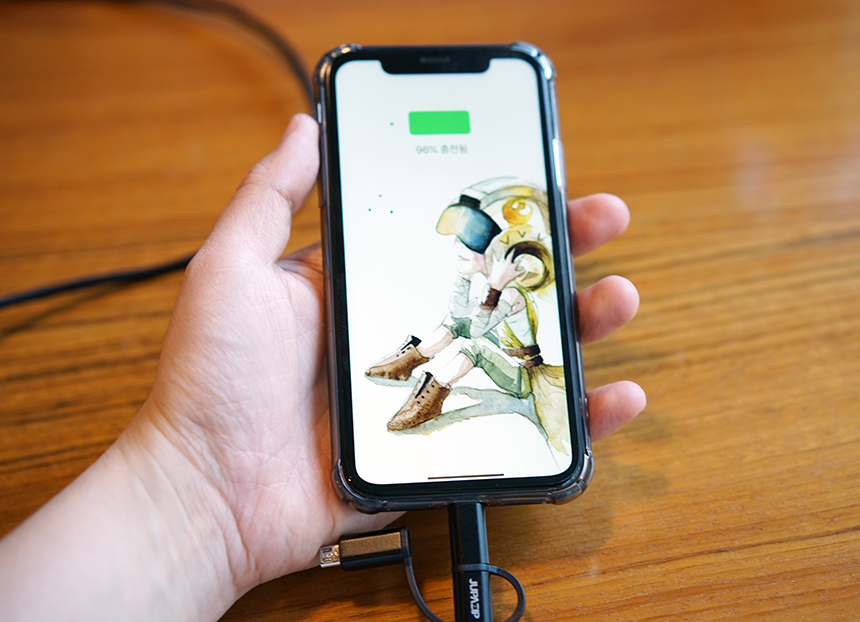 애플 아이폰을 충전할 때는 위와 같이 해주면 충전을 할 수 있습니다. 물론 데이터 케이블도 되구요. 데이터 케이블의 인식률도 꽤 안정적인 편입니다.
