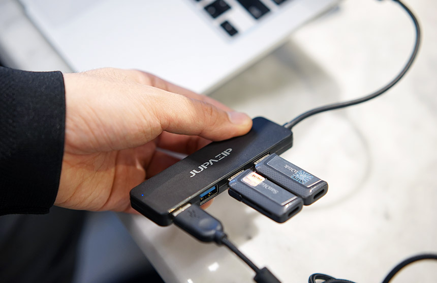 가장 먼저 기본 USB 3.1 포트가 4개가 있는 JP-100 허브 입니다. 여러모로 기본에 충실하기 때문인지 이 제품을 가장 많이 사용하게 되는 것 같아요. 아무래도 USB 허브가 필요한 상황은 하나라도 더 USB 장치를 꽂아 사용하기 위해서니까요.