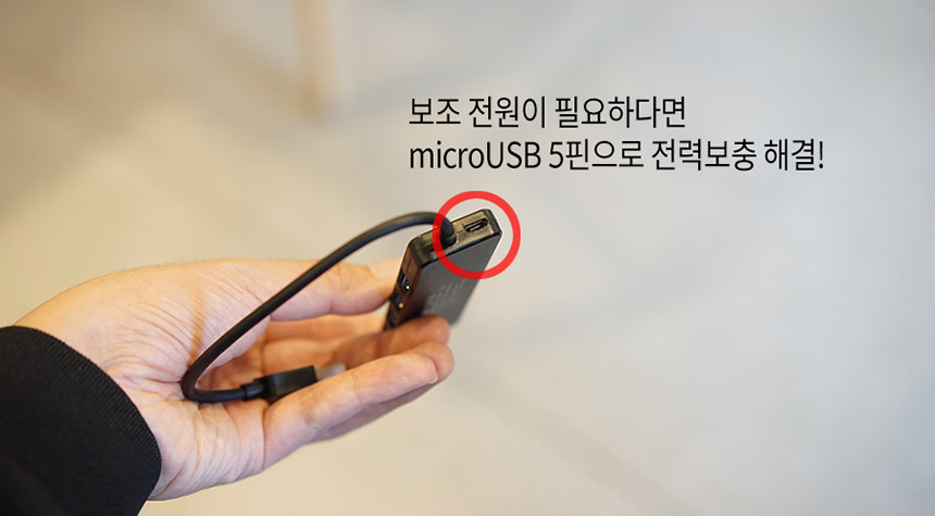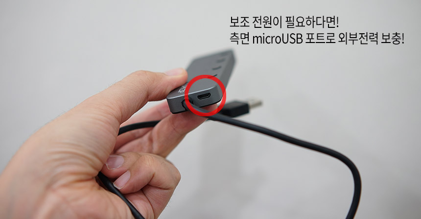 주파집 USB 허브는 기본적으로 microUSB 포트로 되어 있기 때문에, 기존에 사용하던 스마트폰 충전기와 5핀 케이블만 있으면 전력을 공급할 수 있다는 장점이 있습니다.