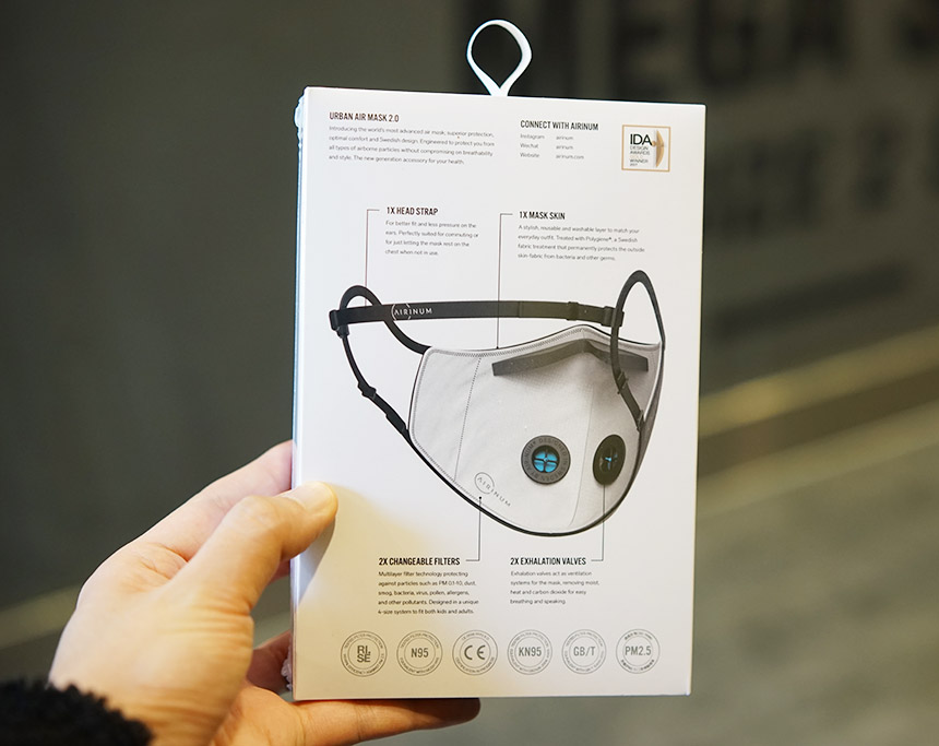 마침 제가 사용하고 있는 스웨덴 미세먼지 방지 마스크, 에어리넘 (Airinum) 에어필터 마스크 클래식 2.0이 미세먼지 PM2.5 (머리카락의 약 20분 1)를 걸러낼 수 있는 고급 마스크이기 때문에, 우한폐렴 예방에도 도움이 될 것이라는 확신을 가지고 사용하고 있습니다.