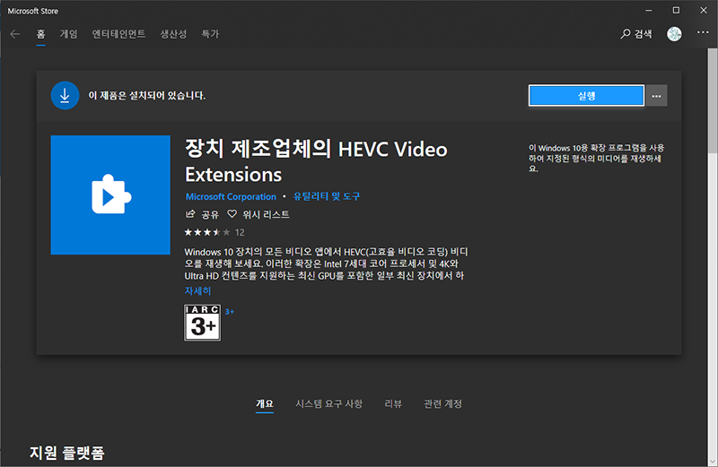 https://www.microsoft.com/ko-kr/p/hevc-video-extensions-from-device-manufacturer/9n4wgh0z6vhq
