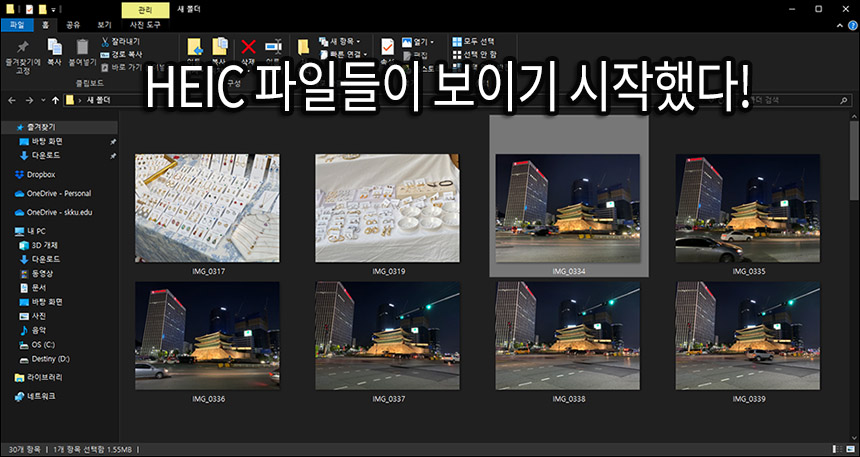 위에 2개의 링크를 통해 윈도우스토어에서 플러그인을 설치했다면, 이제 탐색기에서도 쉽게 HEIC이미지 파일들이 보이는 것을 확인할 수 있습니다.