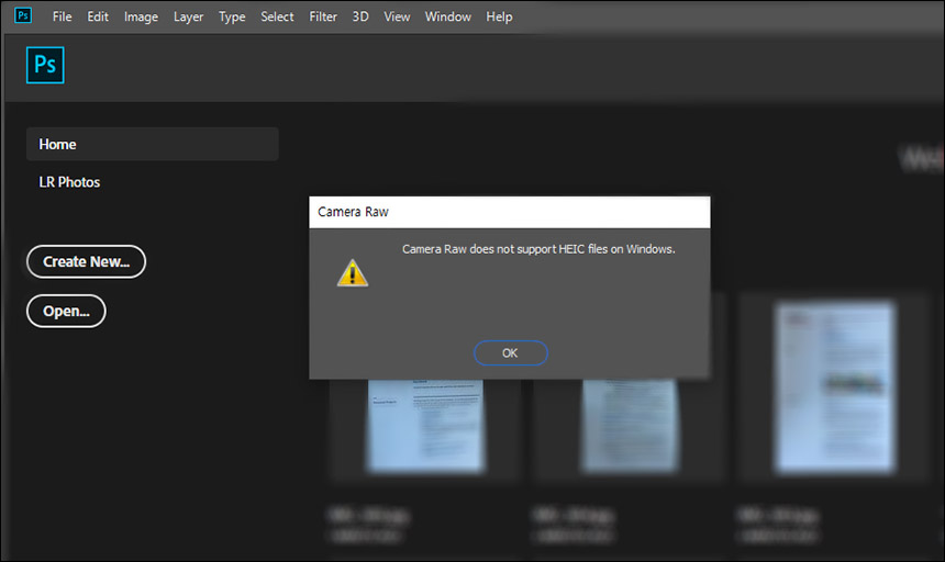 아쉽게도 이미지 뷰어는 가능한데, 맥용 포토샵에서는 쉽게 열리는 HEIC이 아직 윈도우용 포토샵CC에서는 열리지 않죠.
