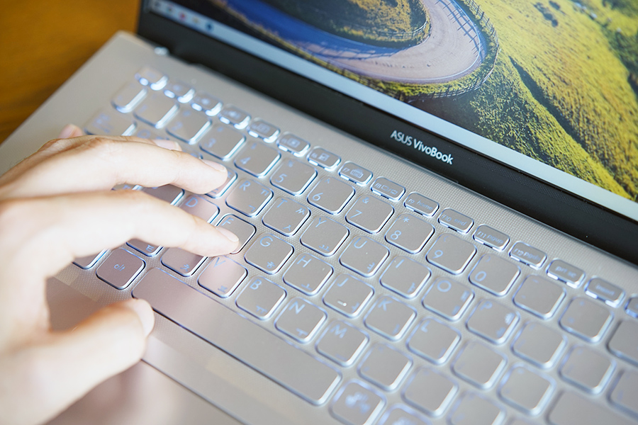 예전에는 고가의 노트북에만 들어가던 키보드 백라이팅도, ASUS VivoBook 14 X412 노트북에는 기본이 되었습니다. 어두컴컴한 곳이나 밤에도 아무런 불편한 없이 타이핑이 가능했구요. 실제로 이 노트북을 사용하면서 어두운 밤에 차를 타고 가면서 무언가 작업을 했어야 하는데, 백라이트 키보드가 좋기는 하더군요. 이제는 빠질 수 없는 요소입니다.