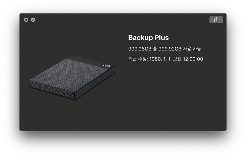 연결하자마자 멋지게 백업 플러스 아이콘과 함께 바탕화면에 뜨는 것이 마음에 드네요 ^^ 참고로 기본으로 exFAT으로 포맷되어 있기 떄문에 맥북이나 윈도우노트북 어디서든 인식이 가능합니다. 파일 복사도 가능하구요. 요즘에는 exFAT으로 그냥 두고 사용하는 것이 여러모로 편하죠.