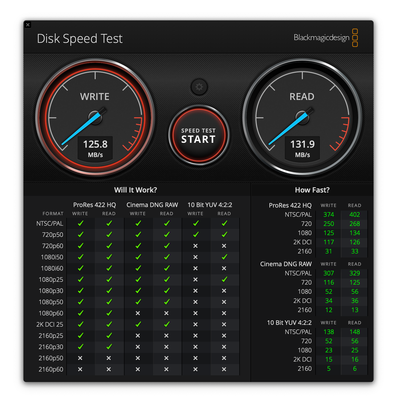 쓰기 속도 최대 125.8MB/s 그리고 읽기 속도가 약 131.9MB/s까지 나오네요.