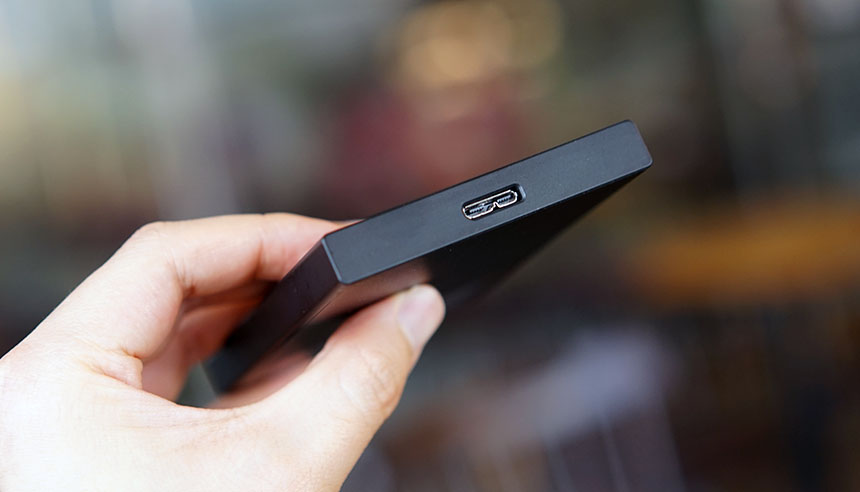 하단 면은 USB 3.0 Micro B 포트입니다. 가장 보편적으로 쓰이고 있는 외장하드 USB 포트 방식입니다.