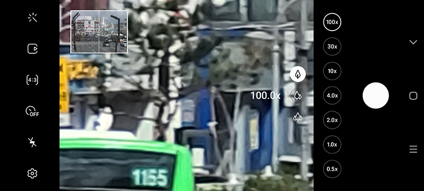 약 10배줌 까지는 써볼만한 수준이지만, 20배를 넘어가는 순간부터 무쓸모... 100배 줌은 그저 한두번 해보고 사용하지 않을만한 그런 기능으로 보여요. 정말로 필요하다면 4~10배 정도에서 촬영한 다음에, 그냥 크롭을 하는 것이 더 나은 선택이라고 봅니다.