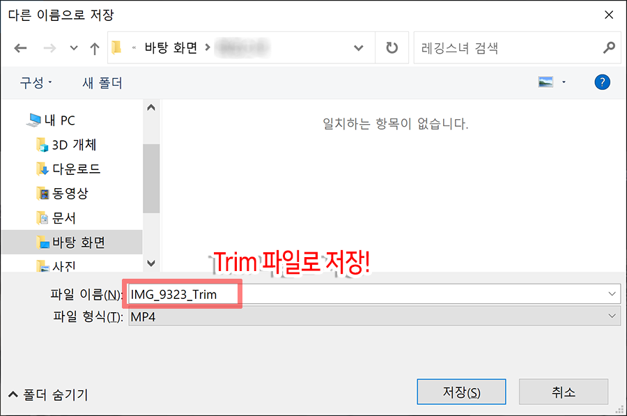 ์์์ MP4 ํฌ๋งท์ผ๋ก ์ ์ฅ์ด ๋๊ณ , ํ์ผ ์ด๋ฆ ๋ค์ 'Trim'์ด ๋ถ๊ฒ ๋ฉ๋๋ค. ์๋ผ๋ธ ์์์ด๋ ๋ป์ด์ฃ ^^