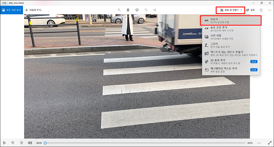 ๊ทธ๋ฌ๋ฉด ์ฌ์ง ์ฑ์์ ์์ ํ์ผ์ด ์ด๋ฆฌ๊ฒ ๋๋๋ฐ, ์ค๋ฅธ์ชฝ ์์ 'ํธ์ง ๋ฐ ๋ง๋ค๊ธฐ'๋ฅผ ํด๋ฆญํด๋ณด๋ฉด '์๋ฅด๊ธฐ' ๋ฉ๋ด๊ฐ ์์ต๋๋ค. ^^