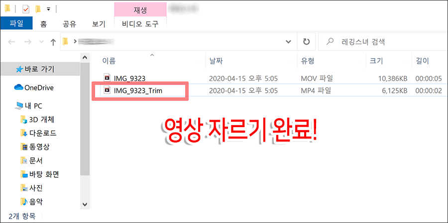์ ์ด์ ์๋ณธ ํ์ผ ๋์ 'Trim'์ผ๋ก ์ ์ฅ๋ ํ์ผ์ ์ด์ด์ ์ํ๋ ๊ตฌ๊ฐ๋ง ๋จ์์๋ ์์์ธ์ง ํ์ธํด๋ณด๋ฉด ๋ฉ๋๋ค. ^^ MOV ํ์ผ์ MP4๋ก ๋ณํํ๋๋ฐ๋ '์ฌ์ง' ์ฑ์ ์ฌ์ฉํ ์ ์๊ฒ ๋ค์.