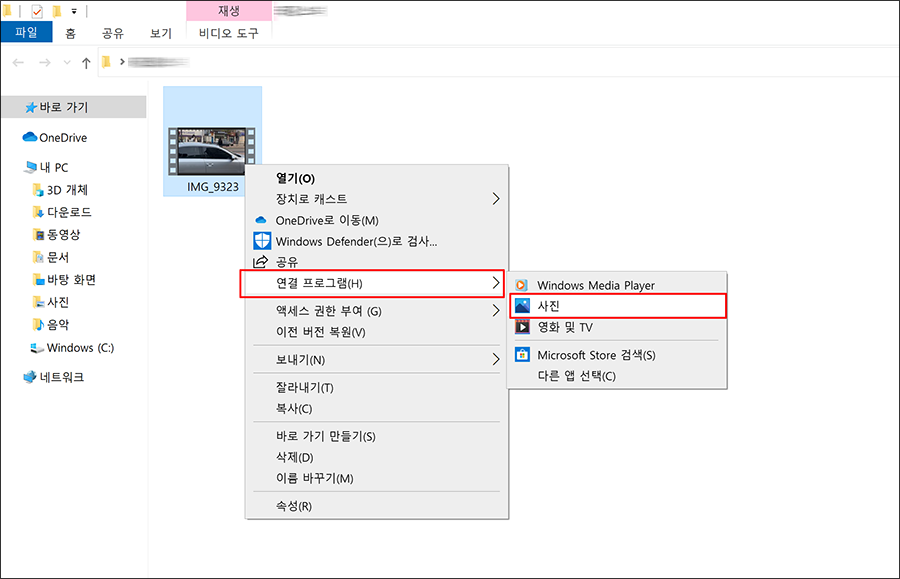 ๋จผ์ , ์์ ํ์ผ์ ์ฐํด๋ฆญ ํ ๋ค, ์ฐ๊ฒฐ ํ๋ก๊ทธ๋จ -> '์ฌ์ง'์ ํด๋ฆญํฉ๋๋ค.
