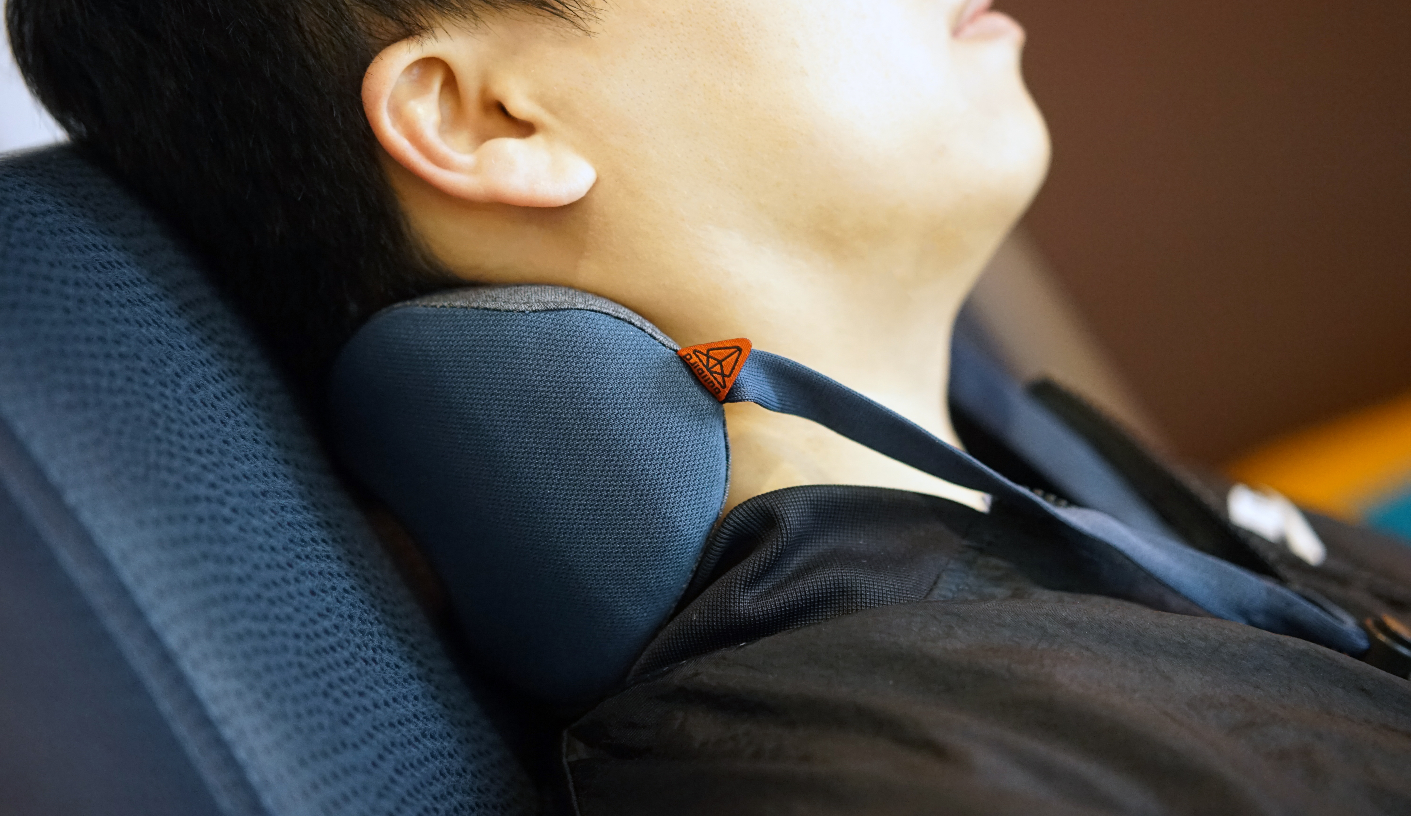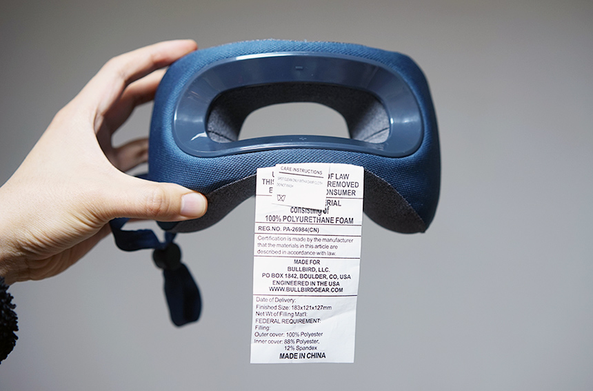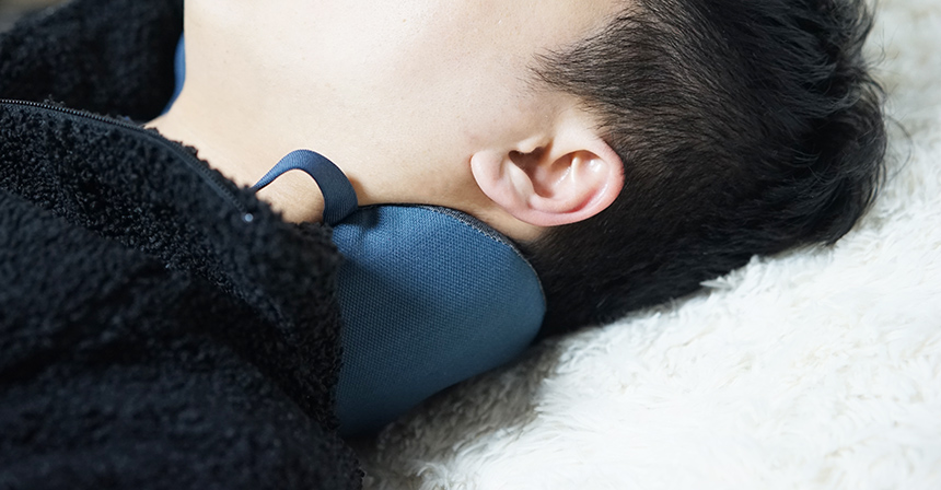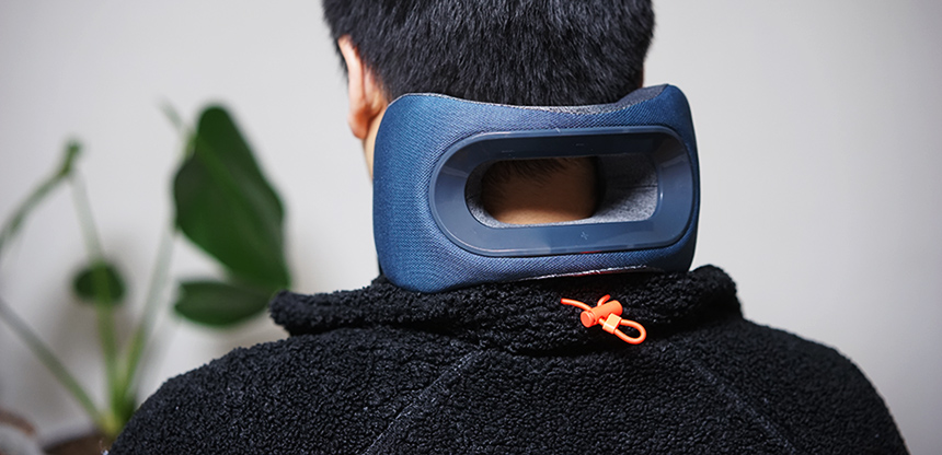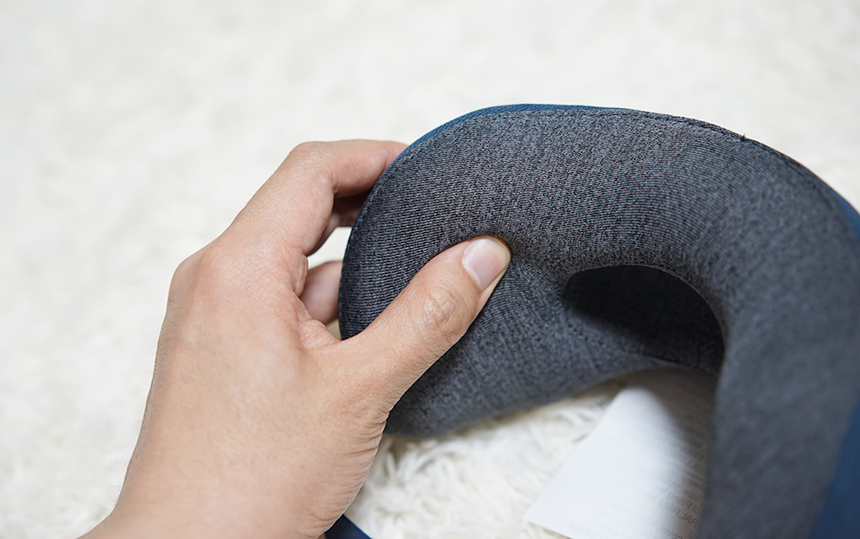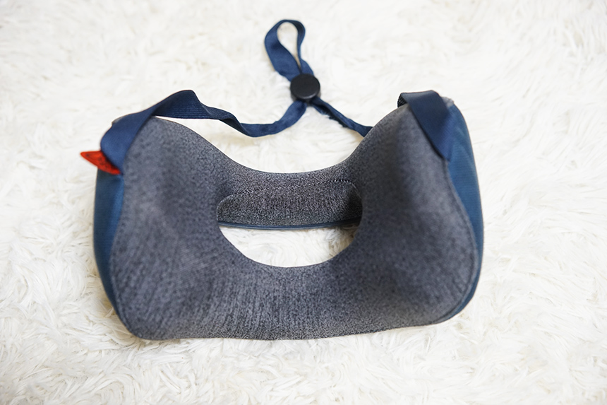 자세히 보시면 완벽 대칭이 아닌 살짝 비대칭 구조로 되어 있습니다. 그래서 똑바로 비거나, 옆으로 빌 때도 적당힌 편안한 착용감을 유지할 수 있도록 설계되었다고 하네요. 실제로 누워서 사용할 때는 비스듬이 비기는 어렵지만, 자동차 의자나 비행기 의자 목 부분에 받치게 되면 살짝 고개를 돌렸을 때도 편안한 편이었습니다.