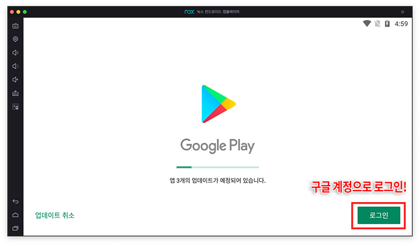 녹스 앱플레이어에서 구글 플레이 스토어 계정 연결