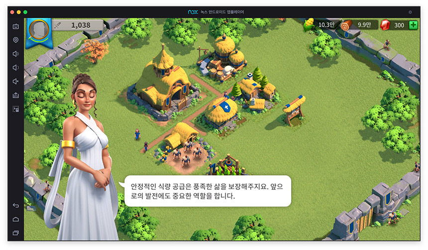 맥용 녹스 앱플레이어에서도 '라이즈 오브 킹덤즈'가 잘 돌아가네요. 전략 시뮬레이션 게임인 만큼 큰 화면으로 보면 시원시원하기도 하고, 마우스 클릭으로 컨트롤 하니 게임을 할 맛이 나는군요.