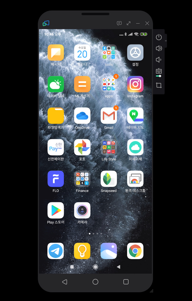 안드로이드 스마트폰을 USB케이블로 연결하면 바로 화면이 뜹니다. 해상도도 깔끔하고, 딜레이 없이 매끄럽게 스마트폰 화면이 바로 PC 모니터로 나오는 걸 경험할 수 있네요. 미러로이드 스마트폰 미러링 프로그램의 완성도가 상당히 뛰어나 보입니다.