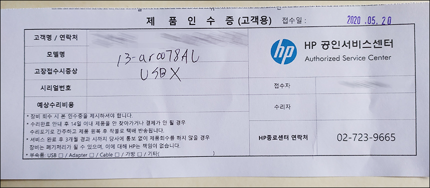 들어가서 접수를 했습니다. 문제 사항을 이야기 하고 인적사항을 알려주니, 일단 구입한지 1년도 안되어 무상수리 기간이기 때문에 쿨하게 무상수리가 된다고 합니다. 보드를 통째로 새것으로 갈아준다 하네요.