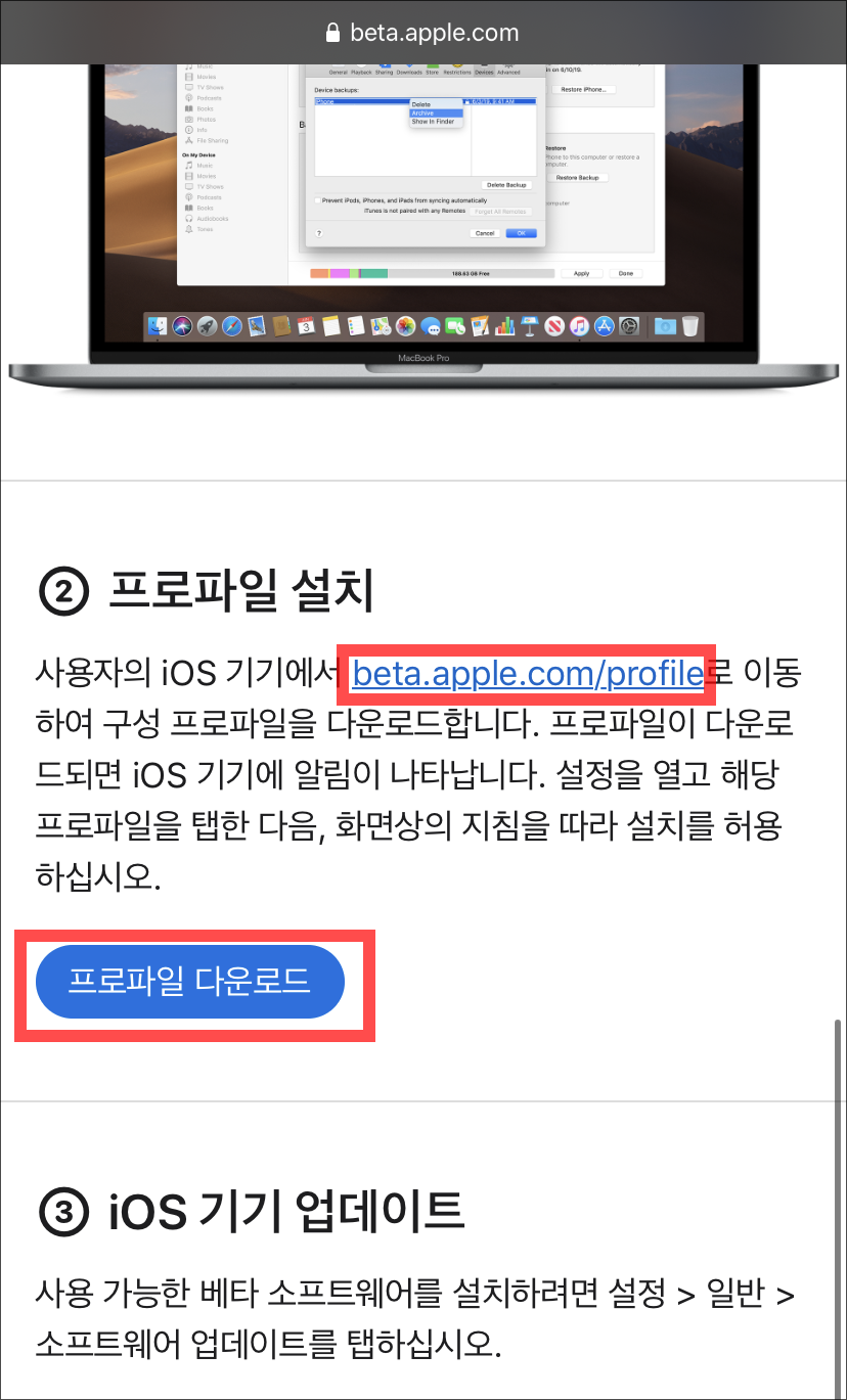 ์์ดํฐ iOS16 ๋ฒ ํ ์ฌ๋ฆฌ๋ ๋ฐฉ๋ฒ ๊ฐ๋ฐ์ ํ๋กํ์ผ๋ก ์ฝ๊ฒ! BetaProfiles