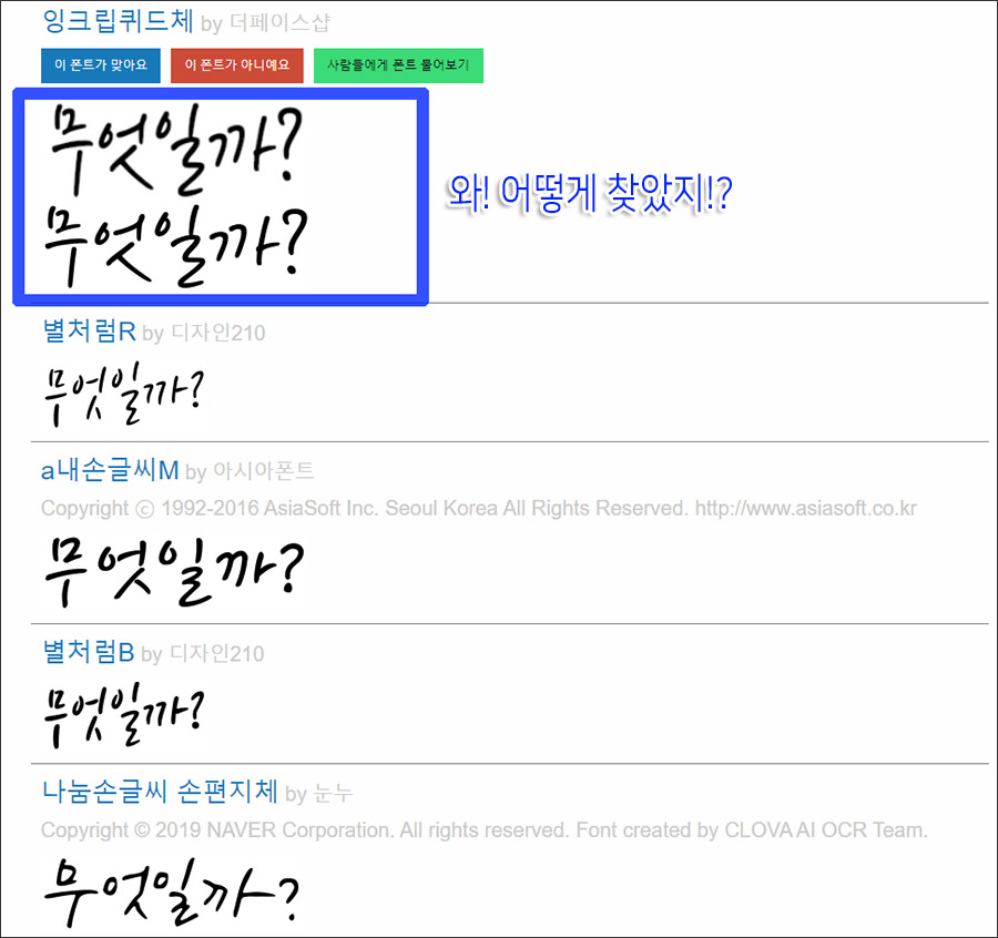 ์ฐ์ธก์ ์ด๋ฏธ์ง ์ธ์ ๊ธฐ๋ฐ์ผ๋ก ๋๊ฐ์ ํฐํธ๋ฅผ ์ฐพ์์ค๋๋ค. ์ค์ ๋ก ์ ๊ฐ ์ฌ์ฉํ ํฐํธ๋ ์ํฌ๋ฆฝํด๋์ฒด ์๊ธ์จ๊ธ๊ผด์ธ๋ฐ... ์ฉ์ผ ์ด๊ฑธ ์ฐพ์๋๋ค์. AI ๊ธฐ์ ์ ์ฌ์ฉํด์ ๊ทธ๋ฐ์ง ๋งค์นญ๋ฅ ์ด ์ ๋ง ๋์ ๊ฒ ๊ฐ์ต๋๋ค. ๋ค์ผ๋ก ์ ์ฌํ ์คํ์ผ์ ๋ค๋ฅธ ๊ธ๊ผด๋ ๋ฝ์๋ณผ ์ ์์ผ๋ ์ผ์์ด์กฐ๊ตฌ์ ^^