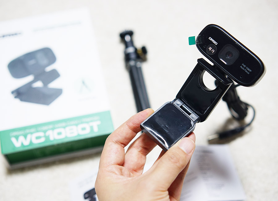 보시는 것처럼 구성품은 메뉴얼, 삼각대, 그리고 DRGO WC1080T USB 웹캠이 들어있습니다.