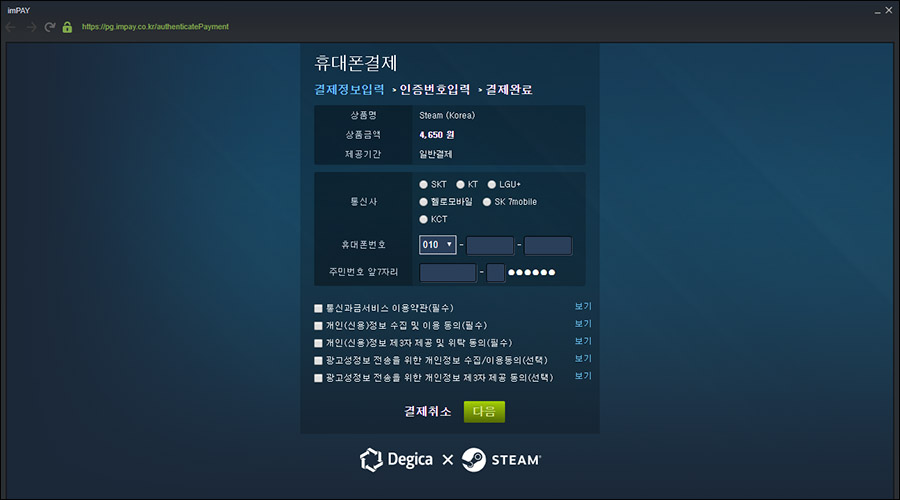 제 경우에는 간편하게 모바일 결제를 했습니다. 휴대폰 요금에 붙어 나오니까 여러모로 편하더군요.