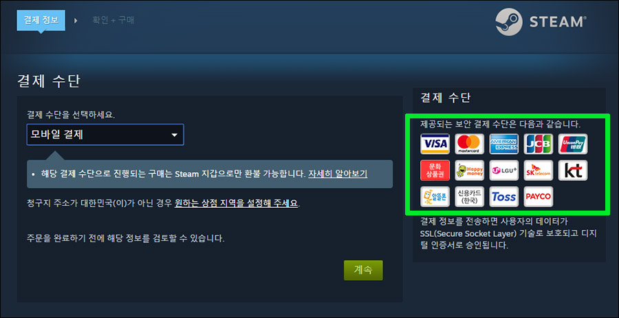 예전에 Steam이 해외원화결제(DCC)로 악명이 높았던 것 같은데, 작년부터 원화 결제가 쉬워진 것 같네요.