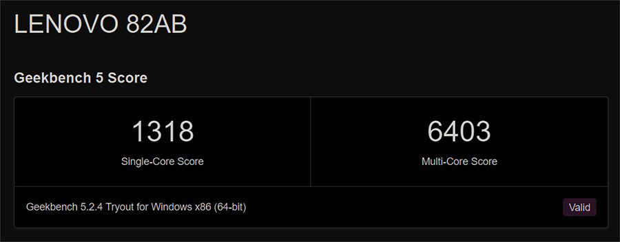 자 그럼 레노버 요가 슬림7 노트북의 성능은 얼마나 빠른지, 긱벤치5를 돌려봤습니다. 싱글코어 1318점, 멀티코어 6403점으로 프리미엄 노트북에 걸맞는 점수가 나오네요.