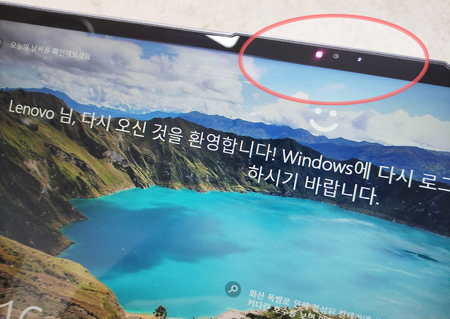 또한 IR센서 카메라도 탑재되어 있습니다. 다른 노트북들이 가진 IR 카메라 뿐만 아니라 더 정확도를 높인 레노버만의 특수한 보안기능도 구현되어있는데요. Glance라는 앱을 켜서 보안기능을 사용해보면...
