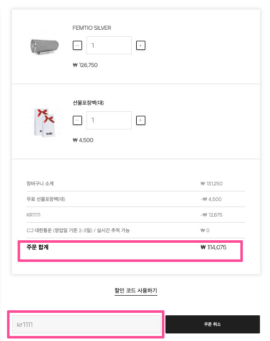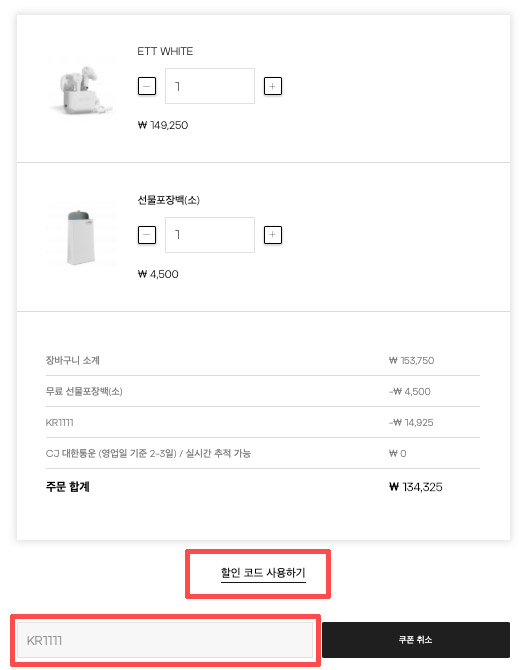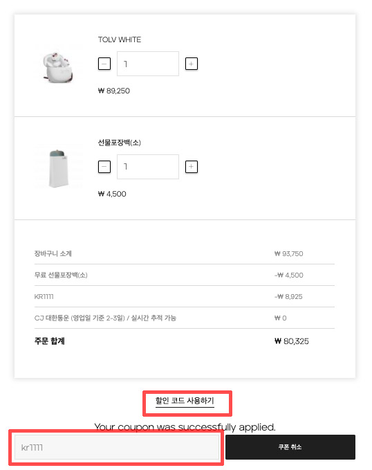 아참, 근데 추가할인 코드를 넣으면, 25% 할인된 가격에서 10% 더 할인된 가격으로 구입할 수 있습니다. 그야말로 할인 곱하기 할인이네요. 쿠폰코드를 공개해봅니다.