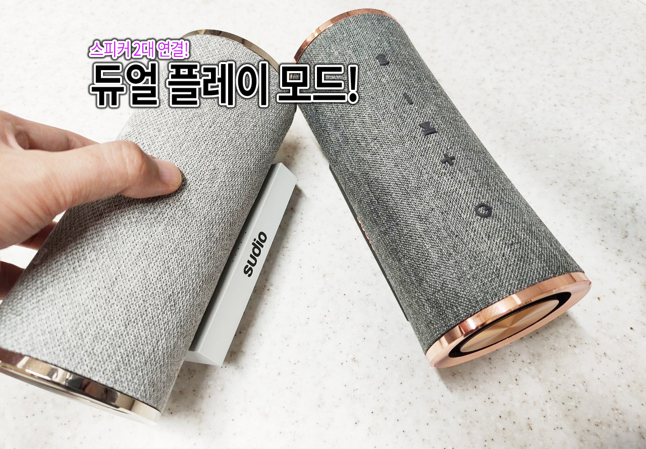 만약 2대를 가지고 있다면, 위에서 보이시는 것처럼 2대를 페어링 해서 듀얼 플레이모드를 사용할 수 있습니다. 저도 이렇게 사용을 하고 있는데... 그야말로 입체음향! ㅎㅎ 실제로는 2개의 스피커가 합쳐져서 스테라오라고 해야 겠지만... 저는 왠만한 7.1 서라운드 스피커 시스템이 부럽지 않더군요.