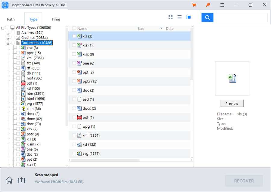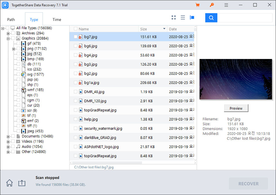 지워진 파일을 찾을 때 이런 구분이 없으면 힘들때가 많은데, TogetherShare Data Recovery 복구 앱은 이런 기본이 잘 되어 있네요.