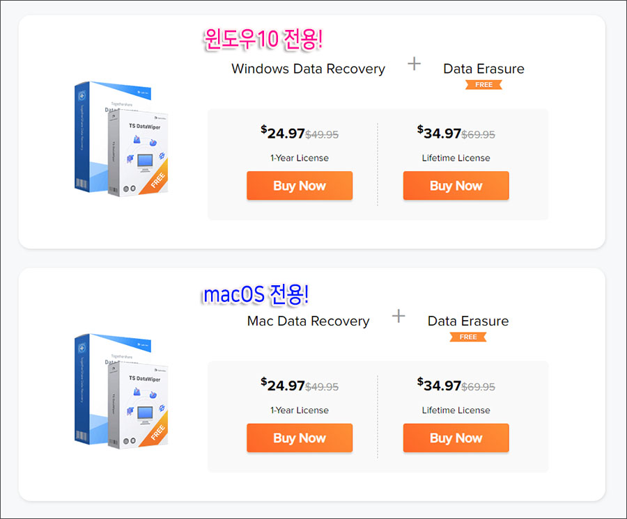 이정도 복구 소프트웨어를 3만원에 구입할 수 있고, 덤으로 데이터 완전삭제 (Data Purge) 앱인 Data Erasure까지 얻을 수 있다니 좋은 조건 인 것 같습니다. :)
