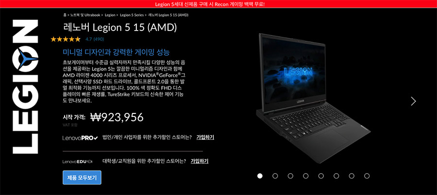 저는 연말연시가 되면 게이밍 노트북 가격을 알아보곤 하는데요, 가장 실용적인 겜트북이라 하면 역시 레노버(Lenovo)의 리전(Legion)이라는 브랜드를 빼놓을 수 없죠.