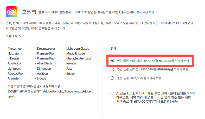 ์ด๋ฒ์ Adobe์์ ๋ธํ(๋ธ๋ํ๋ผ์ด๋ฐ์ด) ํ ์ธ์ ํ๊ธธ๋, ์ด๋๋น CC๋ฅผ ๋ชจ๋ ์ฑ์ ๊ตฌ๋ ํ๋ ๋ฐฉ๋ฒ์ ๊ฐ๋จํ๊ฒ ์ ๋ฆฌํด๋ด ๋๋ค. ์ด๋ฒ ํ ์ธ ๊ฐ๊ฒฉ์ด ๋๋ฌด ํ๊ฒฉ์ ์ด๋ผ์, ๊ตฌ๋ ๊ฐฑ์ ์ด ์กฐ๊ธ ๋จ์ผ์ ๋ถ๋ค์ ์๋ก ๊ตฌ๋ ํ์๋ ๊ฒ์ด ์คํ๋ ค ์ด๋์ผ ์ ๋ ์ ๋๋ค. ใ ใ