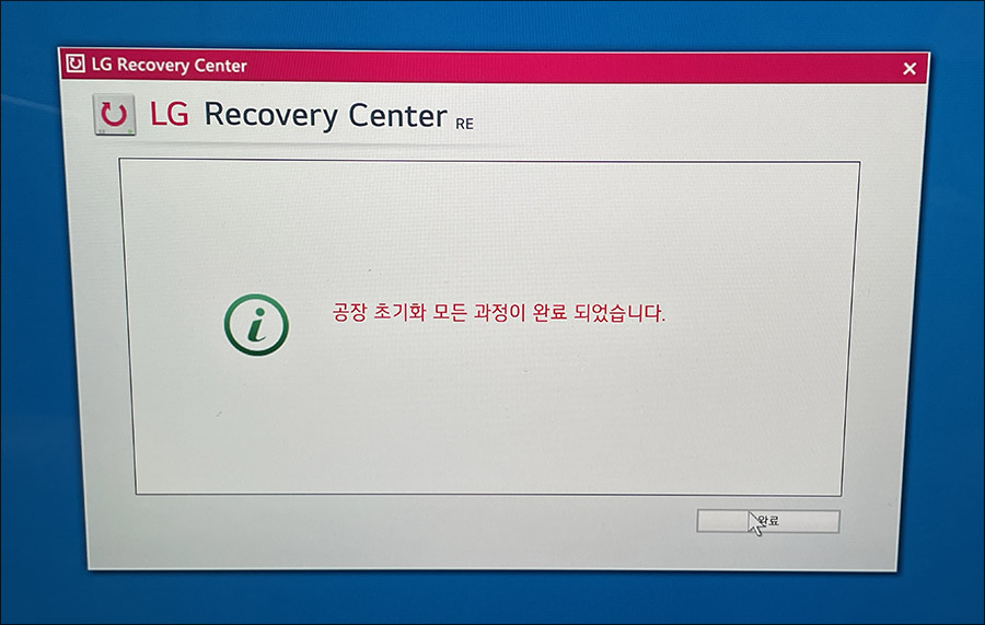 그러면 위와 같이 LG Recovery Center로 부팅이 됩니다.