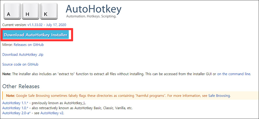 :: AutoHotKey ๋ค์ด๋ก๋ ํ๋ฌ ๋ฐ๋ก๊ฐ๊ธฐ ::