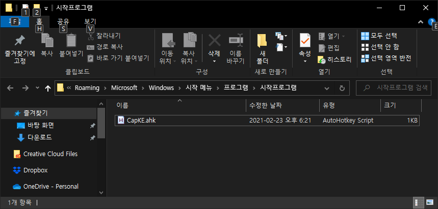 ์, ์ง์ ๋ง๋ CapKE.ahk ํ์ผ์ ์์ ํ๋ก๊ทธ๋จ ํด๋์ ๋ฃ์ด์ฃผ๋ฉด ๋์ฃ ^^
