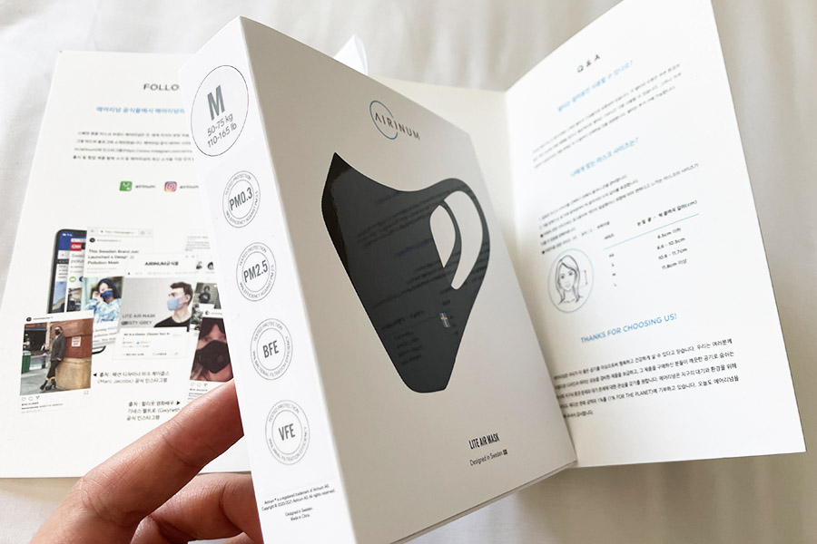 에어리넘 마스크인 만큼 디자인도 매우 예쁘기 때문에 선물용으로도 적극 추천해봅니다 :)