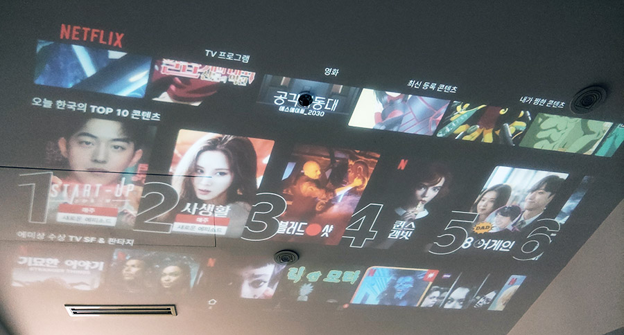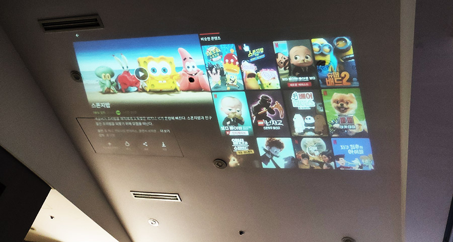본격적으로 사용해보기 위해 팬션에 잠깐 놀러갔을 때, 천장에 넷플릭스를 한번 틀어보았는데요. ^^