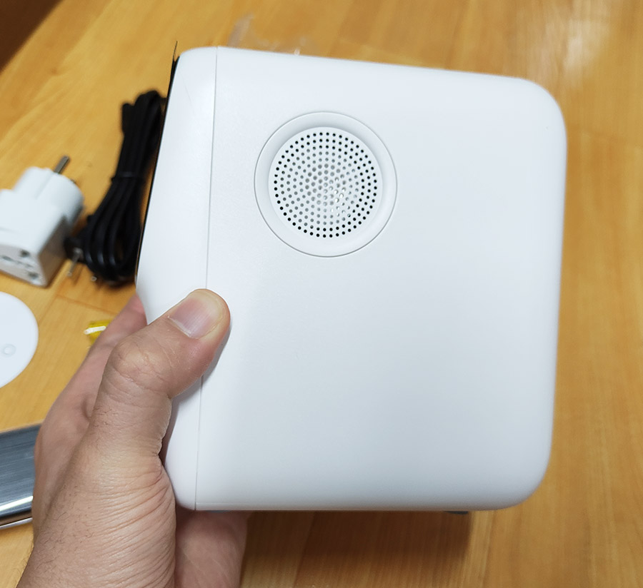 스피커가 있어서 어느정도 영화를 감상할 수 있는 정도 수준의 사운드가 나옵니다. 원한다면 외부 AUX 케이블을 이용해서 스피커 출력을 해도 되구요.