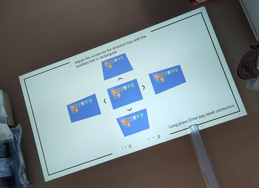 테스트를 하기 위채 천장에 잠깐 빔을 투사해봤습니다. 각도에 따라 조절이 가능하구요 ^^ 비슷듬한 각도에서 벽으로 빔을 쏴도, 어느정도 보정이 가능하죠.
