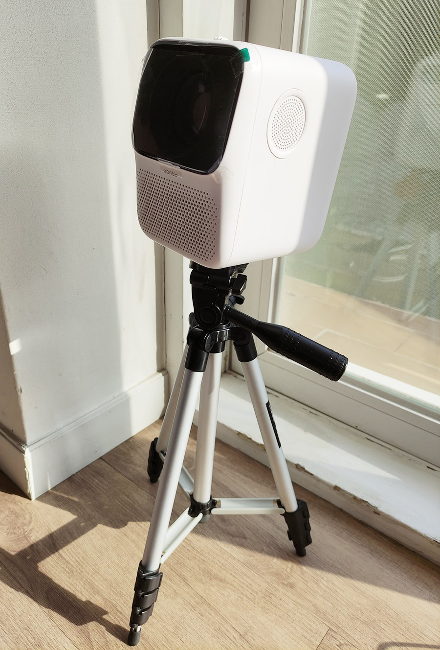 직구하면 약 15만원대에서 구입할 수 있는 휴대용 빔으로, 자체 안드로이드OS와 내장 스토리지, 와이파이 연결 등을 지원하여 손쉽게 들고 다니면서 컨텐츠를 즐길 수 있는 컴팩트한 빔 프로젝터로 적극 추천을 받고 있는 모델이죠.